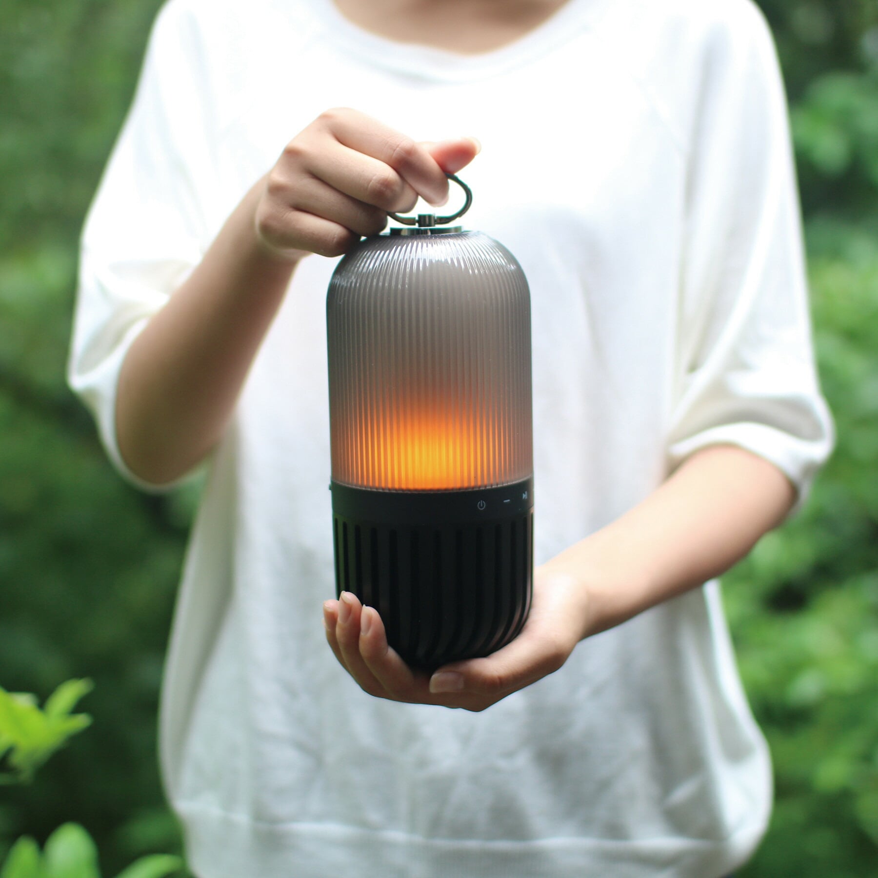 ・焚火のようなゆらぎのある癒しの灯りと音楽を同時に楽しむことができるランタンスピーカー。