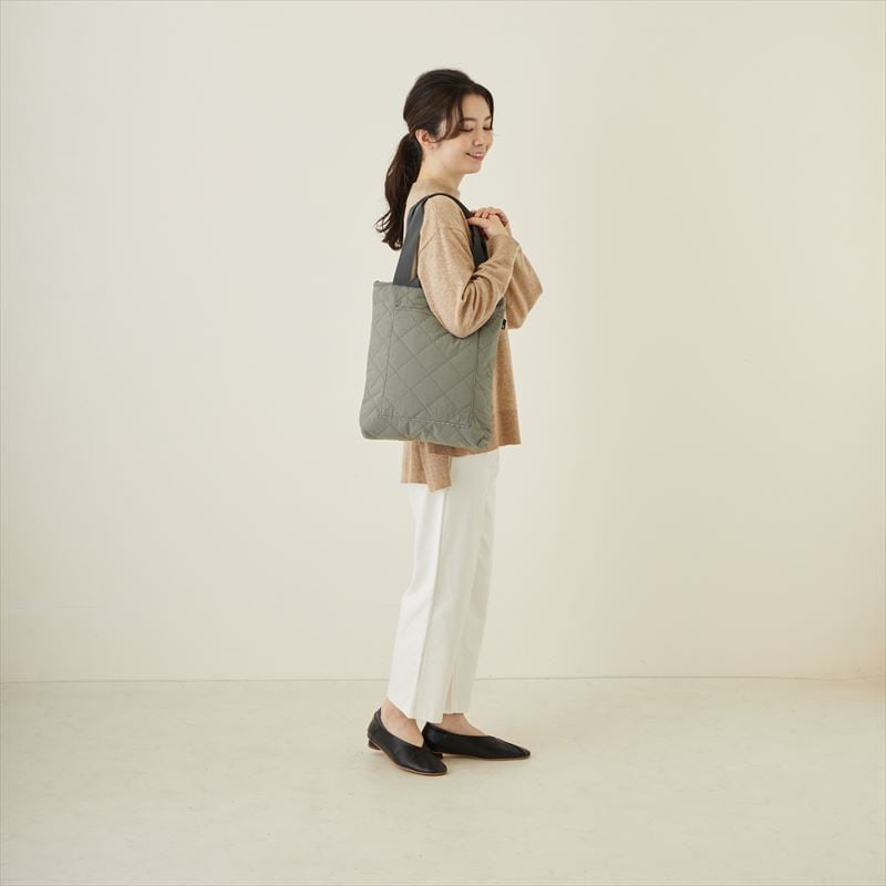 ・軽くて丈夫なナイロン生地に、菱形(ダイヤモンドシェイプ)キルティング加工を施しました。