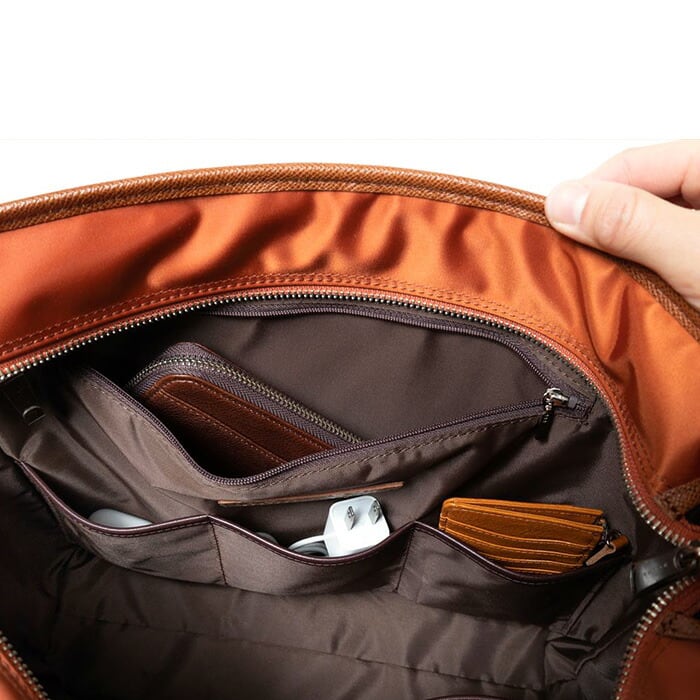 ・本体使用ナイロンは弱撥水、生地裏にPVC加工を施しているので、水に濡れても中まで水が染み込みにくくなっています。
