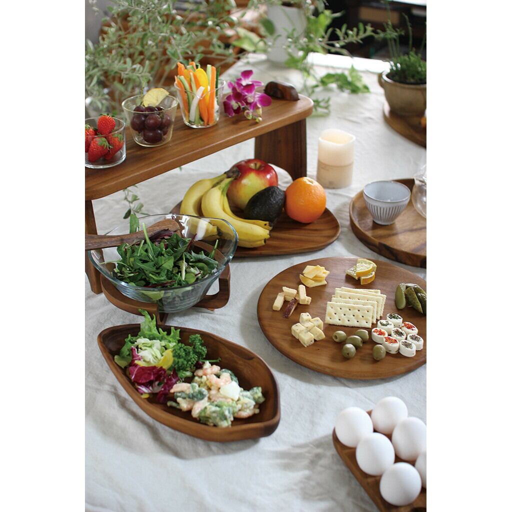 ・アカシア素材のサービングとスタンドがセットになったガラスサラダボウルは普段使いからおもてなしにも◎