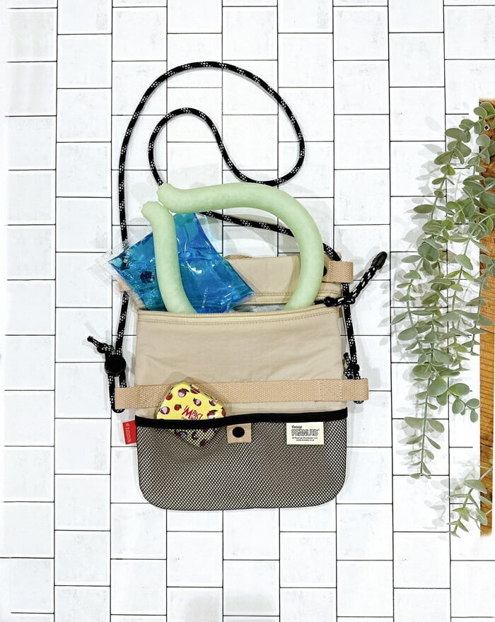 ・酷暑に欠かせない冷却アイテムや溶けやすいコスメやお菓子などを収納できるサコッシュ。