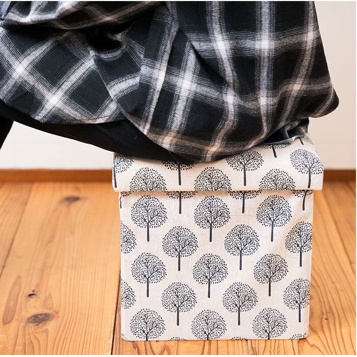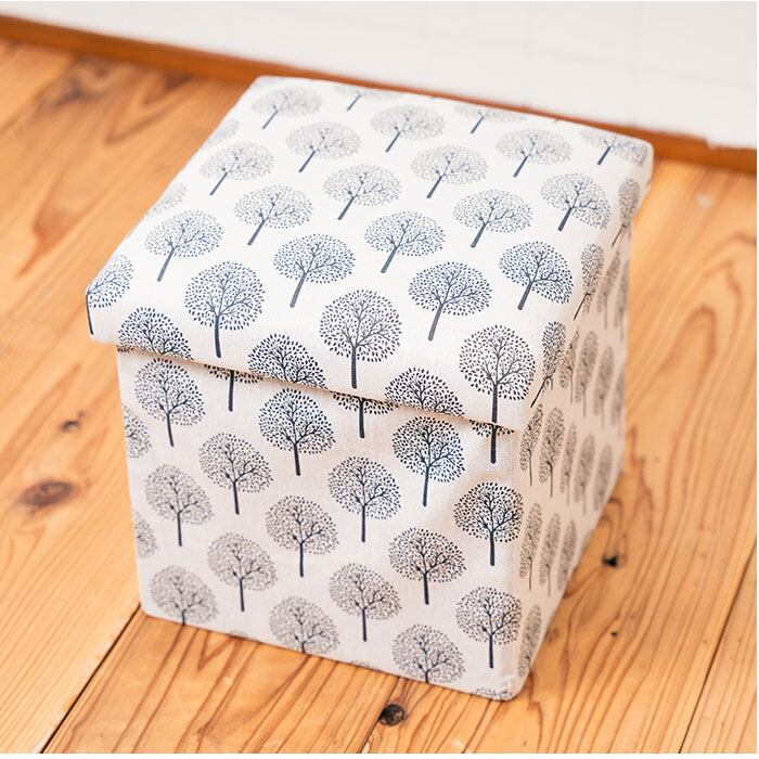 ・ちょこっと座れて、中にしまえて、使わない時は小さくたためる可愛い柄の便利ボックスです。