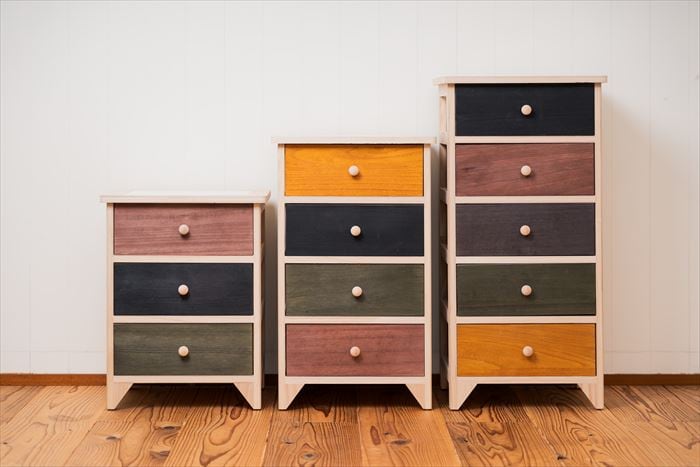 ・引き出しを入れ替えることで着せ替えが出来るチェスト。