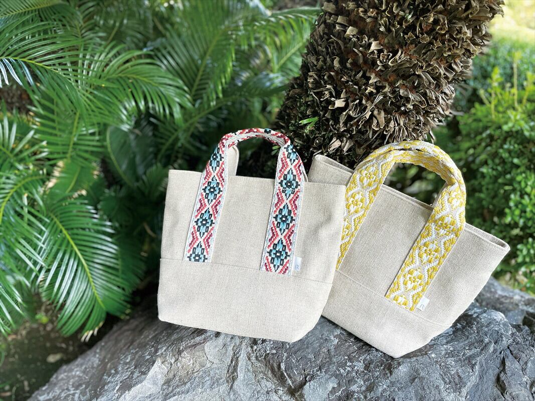 ・豊富な持ち手テープのバリエーション。テープのデザインに合わせて、内生地がそれぞれ異なるカラー配色もポイントです。