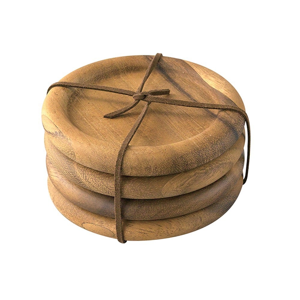 ・ラウンド形の木製コースター4枚セットです。ふちに高さをもたせているのでナチュラルでやさしい雰囲気。