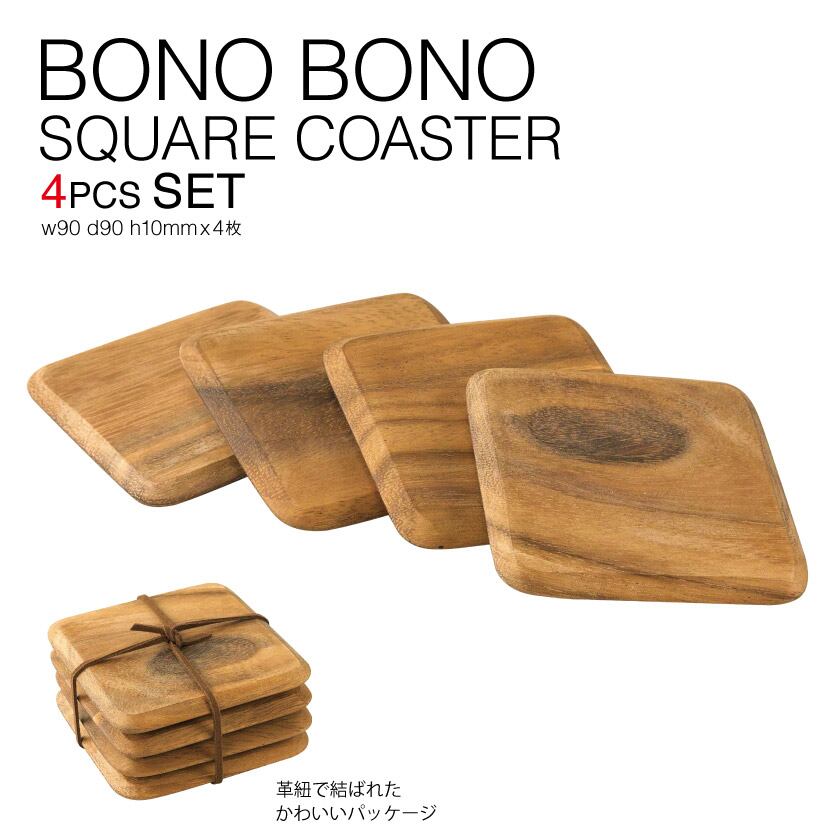 ・スクエア形の木製コースター4枚セットです。ふちに丸みをもたせているのでナチュラルでやさしい雰囲気。