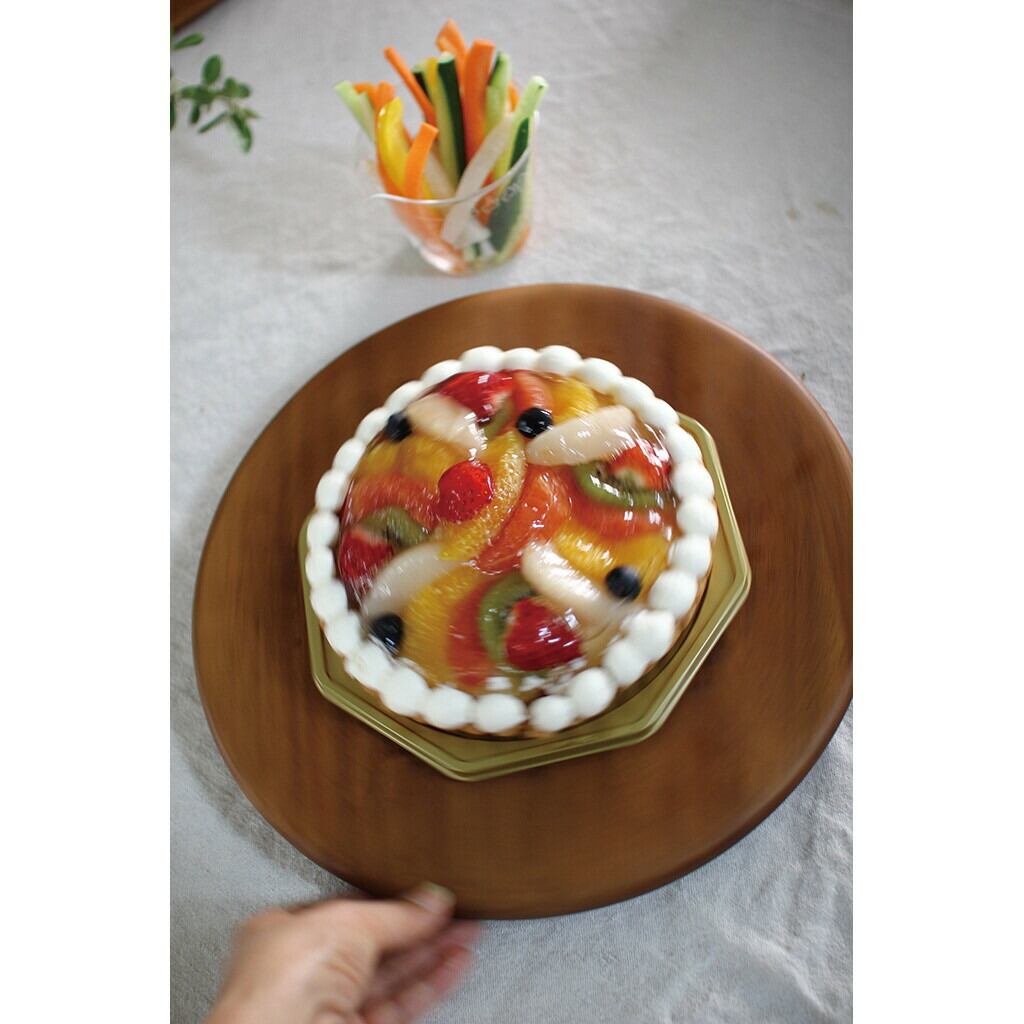 ・回転プレートはケーキ作りや、ピザ用、オードブル用のお皿に便利。見た目も華やかなパーティー仕様に見えるサービングボードです。