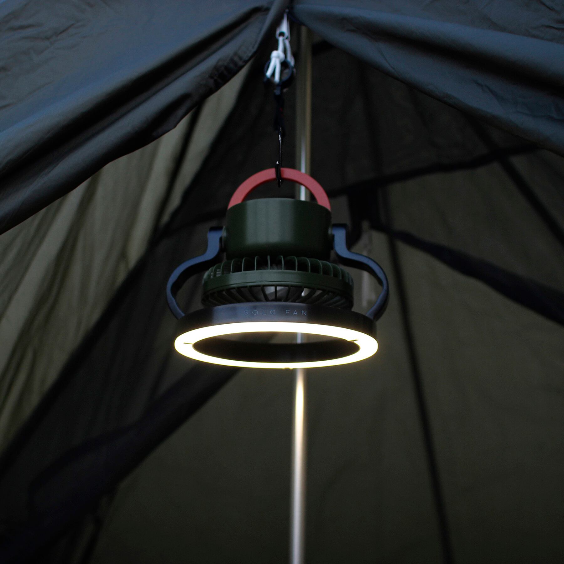 ・少しでも荷物を減らしたいと工夫されているソロキャンパーのために開発したアウトドア扇風機です。