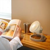 ・扇風機は一方向に上下180度好きな角度調節して固定ができます。また、静音性に優れたブラシレス(DC)モーターを採用。風量は弱風/中風/強風の3段階の切り替えが可能。最大風速180m/分と小さいボディながらも頼もしい風量です。