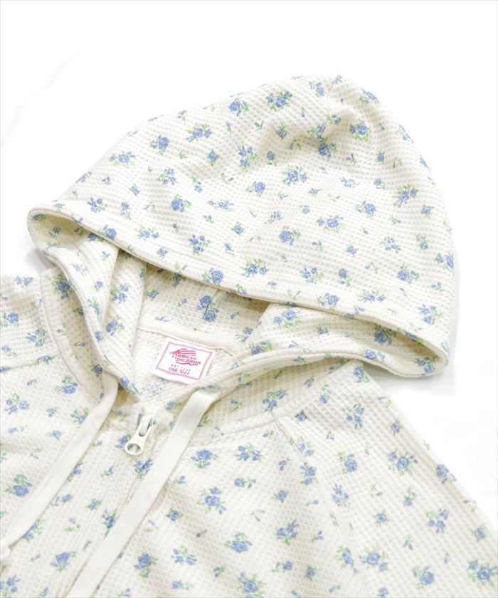 ワッフル 生地 花柄 通販 パーカー JEMORGAN サーマル JD672-59S ジェーイーモーガン フルジップパーカー レディース かわいい おしゃれ ジップアップ 小花柄 ワッフル生地 アメカジ パーカ トップス レディースファッション