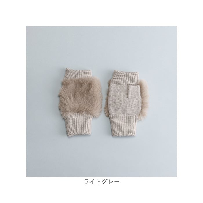 WOMEN フェイクファー付きフィンガーレスニットグローブ