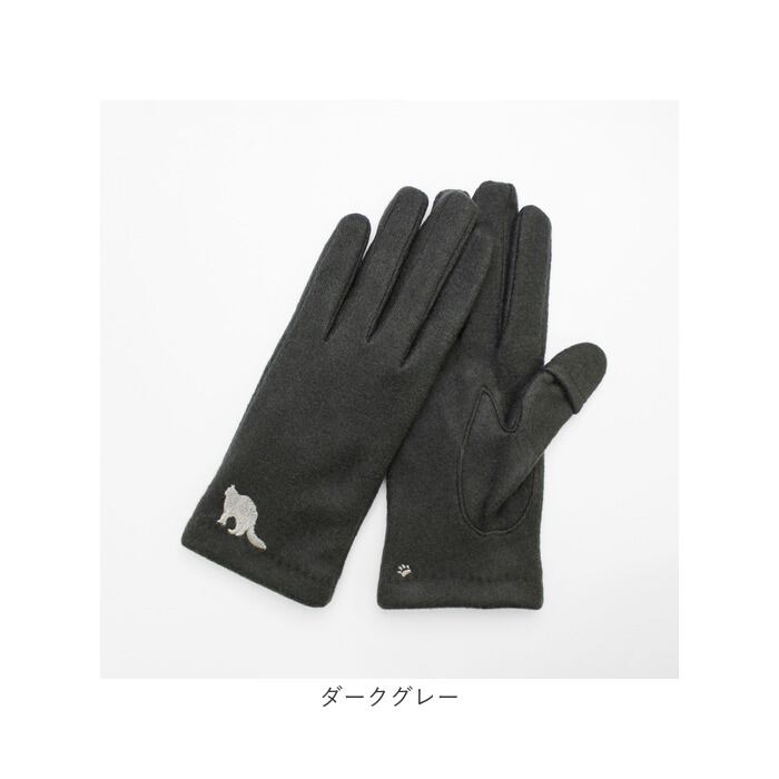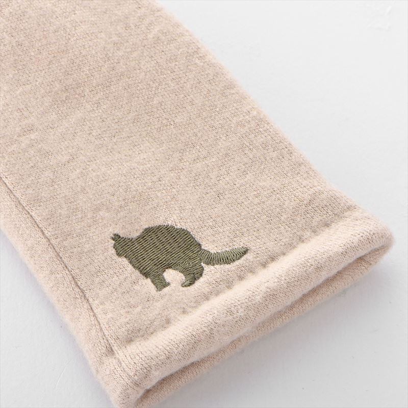 ・ふわふわの長い毛をしている猫の刺繍ジャージグローブ。