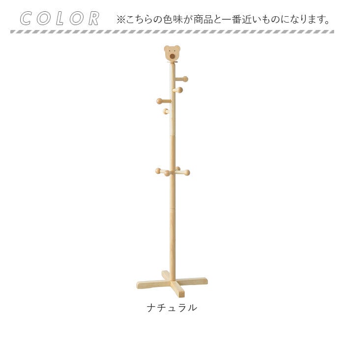 ポールハンガー 子供 通販 ハンガーラック キッズハンガーラック キッズハンガーくま 永井興産 NK-4022 ポールスタンド コートハンガー 洋服掛け 木製 木目 洋服かけ ポール 玄関 コート掛け 子供部屋 おしゃれ 衣類 収納 制服 インテリア 雑貨