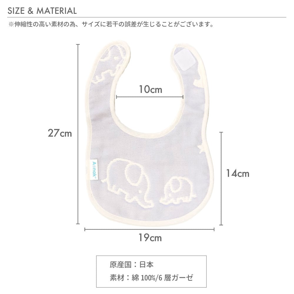 ベビー スタイ よだれ掛け ガーゼ 通販 よだれかけ ビブ ベビースタイ おしゃれ かわいい 可愛い 男の子 女の子 ゾウ 象 ぞう 綿100% 日本製 出産祝い 出産準備 ギフト お祝い 6層ガーゼ GA7009 ベビー用食事用品 授乳用品 ベビー小物