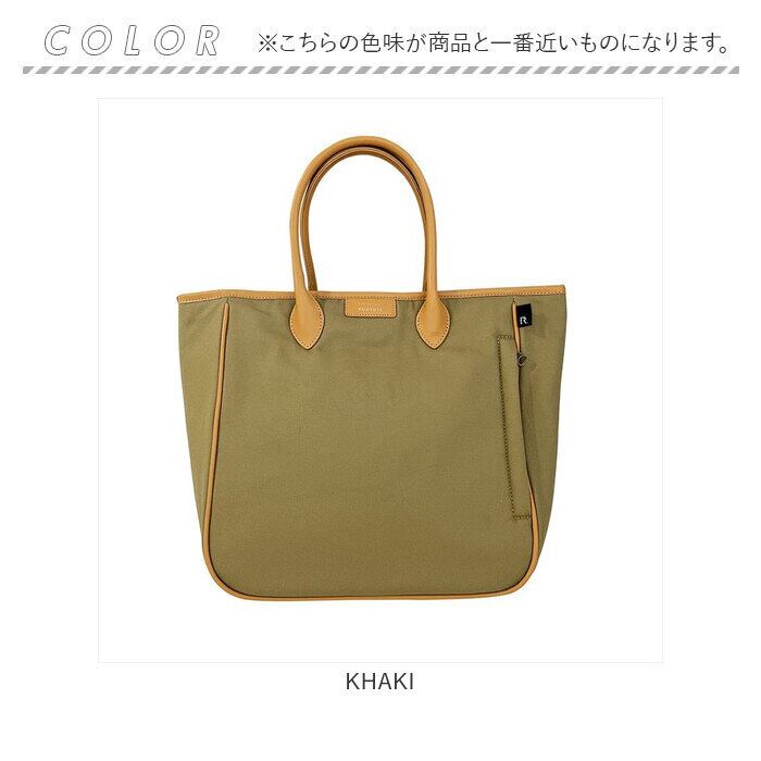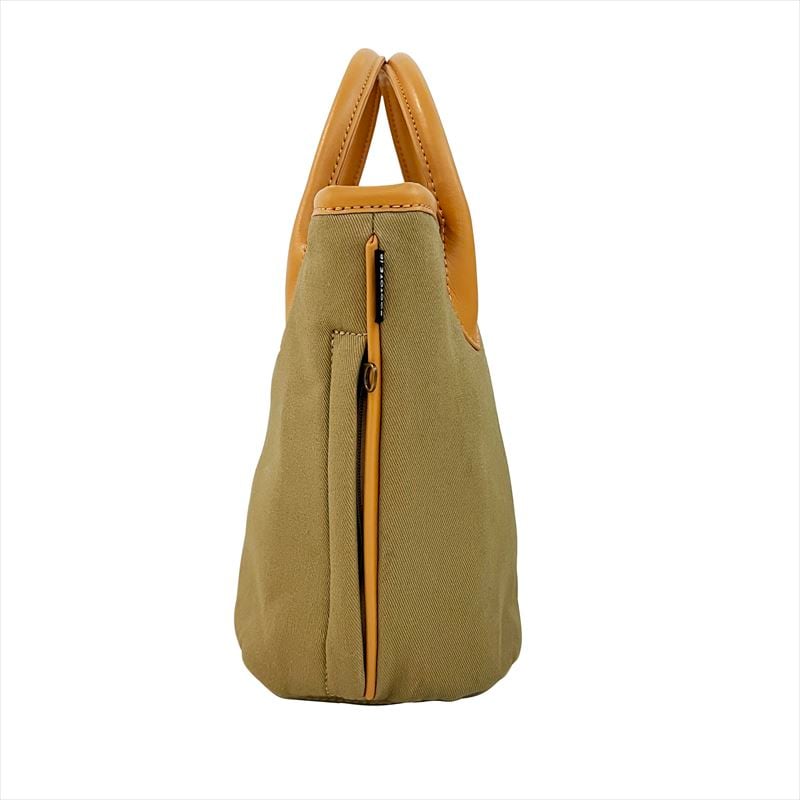 ・コットンとフェイクレザーのコンビが魅力。丸みのある持ち手、軽くてスッと自立する!