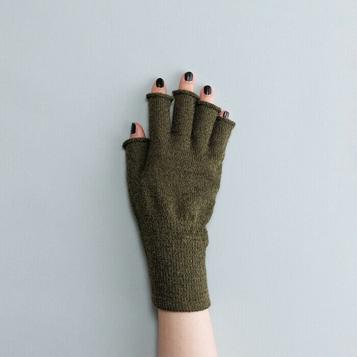 「抗ピルタイプ」の「バルキーアクリル」を使用したフィンガーレスニットグローブ。
