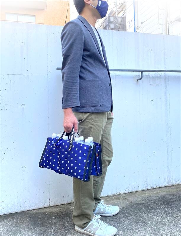 ・真ん中で折りたためば、大きなものだけでなくドリンクや調味料なども運べるトート型に。