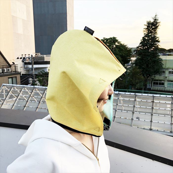 ・サイドのファスナーを広げてかぶればフードに変身。突然の雨や風から頭をガードできます。