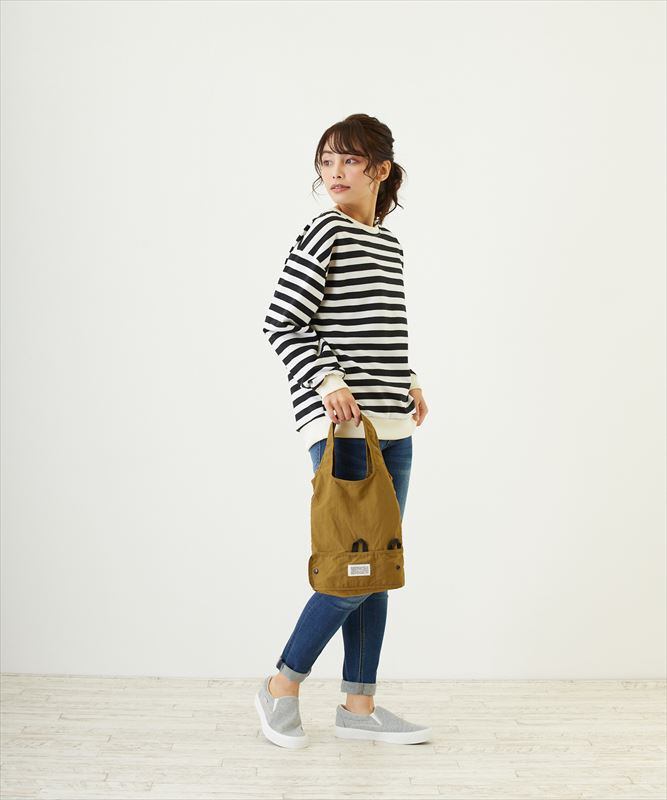 ・コンパクトに折りたたむとトートバッグになる遊び心のあるデザイン。