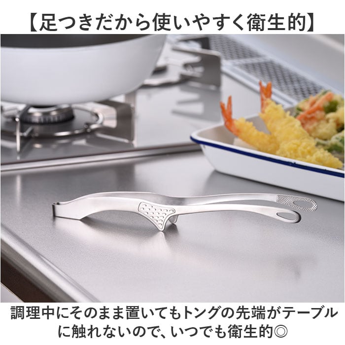 ・足つきだから衛生面も安心の「足付き便利トング 大 オールステンレス」が登場。