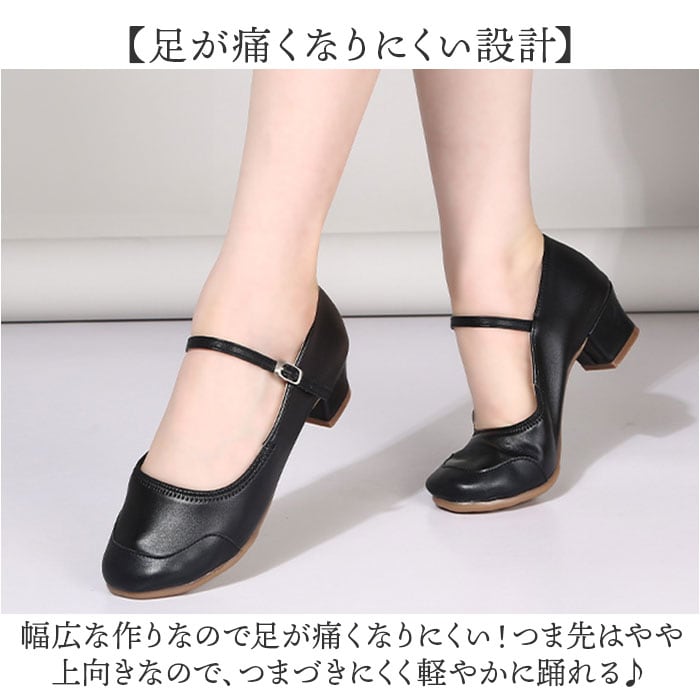 ・幅広な作りなので足が痛くなりにくい!つま先はやや上向きなので、つまづきにくく軽やかに踊れる♪