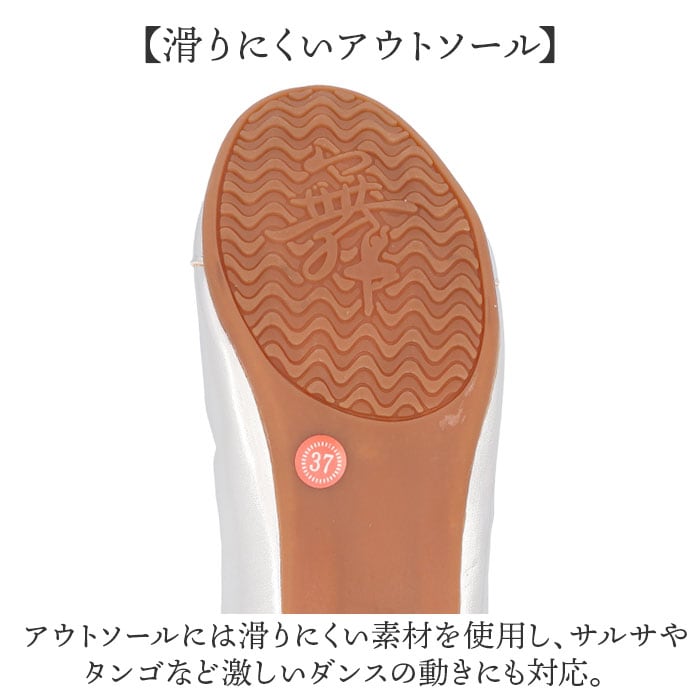 ・アウトソールには滑りにくい素材を使用し、サルサやタンゴなど激しいダンスの動きにも対応。