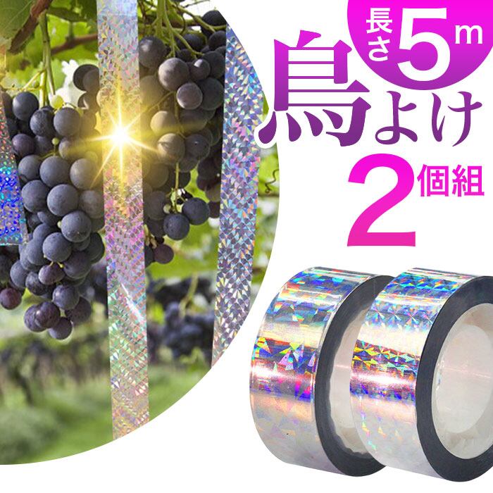 鳥よけ テープ 2個セット 通販 鳥よけグッズ 鳥避け グッズ 防鳥テープ カラスよけ 対策 ハトよけ ベランダ とりよけ はとよけ 50m ホログラムテープ キラキラ 吊り下げ式 両面反射 ツバメ除け 防鳥 防獣 害鳥 糞害 フン害 畑 庭 屋外 鳥対策 撃退