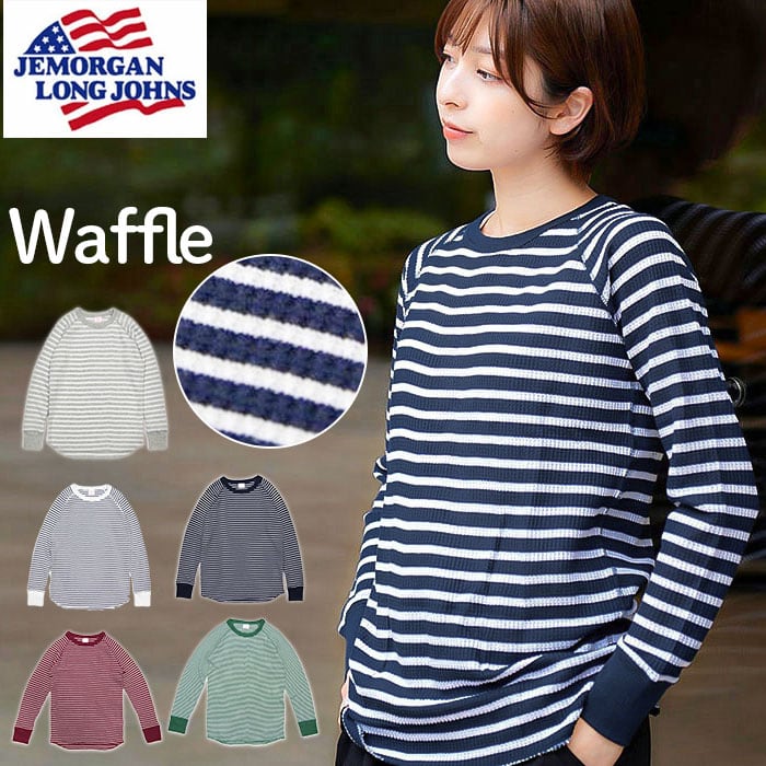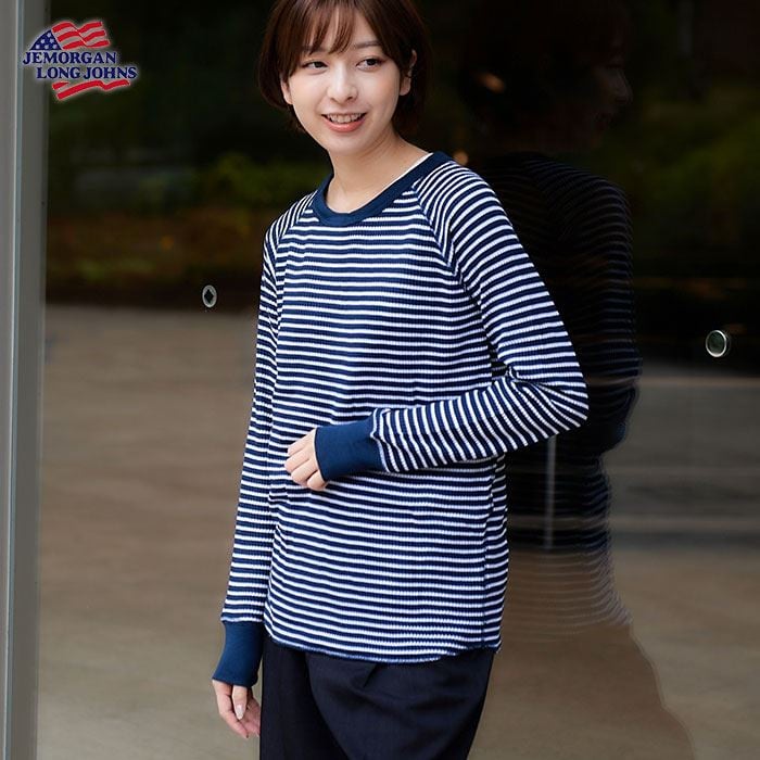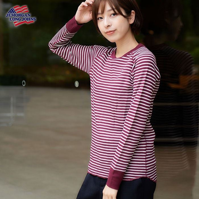 JEMORGAN サーマル 通販 ワッフル ロンT パックTシャツ JB068-59H ジェーイーモーガン レディース ワッフル 生地 ボーダー シンプル 長袖 tシャツ シンプル ワッフル生地 アメカジ カットソー トップス レディースファッション