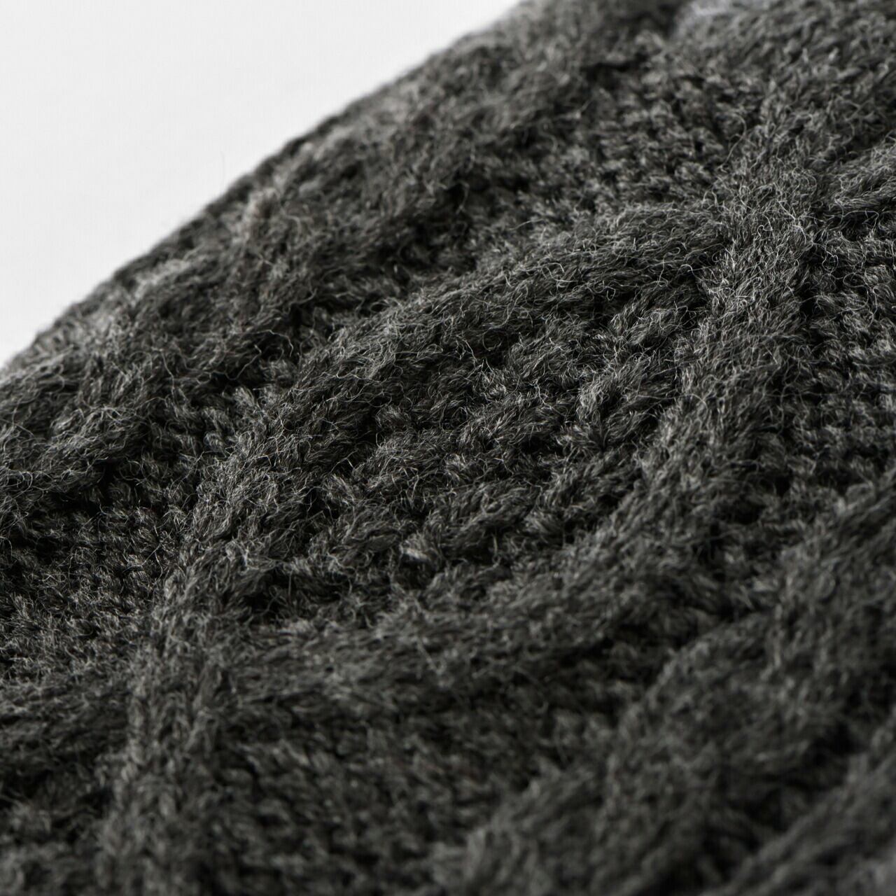 ・甲側に季節感のあるケーブル編みニットを使用し、掌にジャージ生地を合わせることでカジュアルすぎず少し上品な雰囲気に。