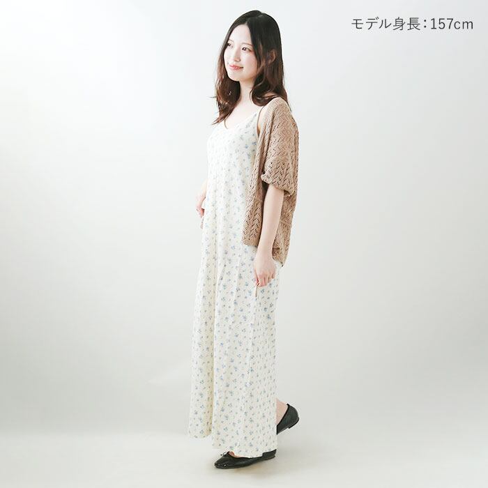 JEMORGAN レディース ワッフル花柄キャミワンピース(パック入り)