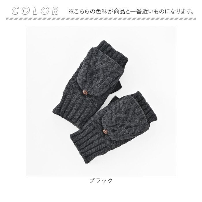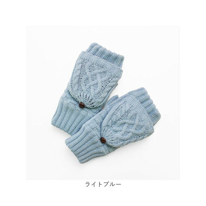 ・凹凸感のあるほっこりやわらかな雰囲気のフード付きケーブル編みニットグローブ。