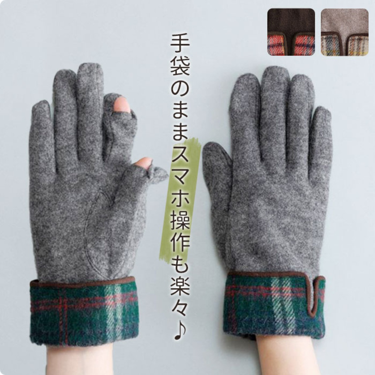 タータンチェックカフスジャージグローブ タッチパネル対応