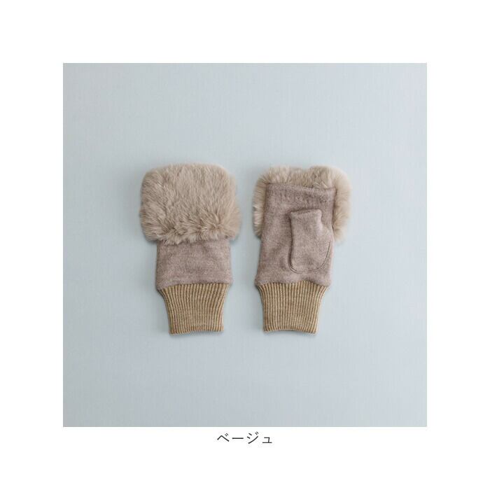 WOMEN フェイクファー付きフィンガーレスグローブ
