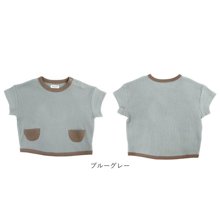 ・両サイドの丸みバイカラーポケットがかわいい♪ワッフル生地のTシャツです。