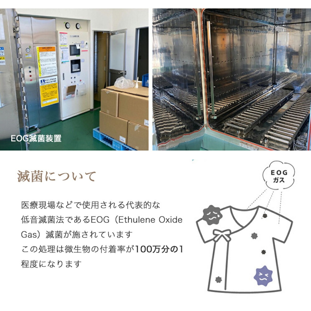 ・生まれたてのデリケートな赤ちゃんの肌を包み込む「肌着」を EOG(ガス)で目に見えない細菌やウィルスもで滅菌を行い、安心して着せられる新生児肌着を赤ちゃんにお届けします。