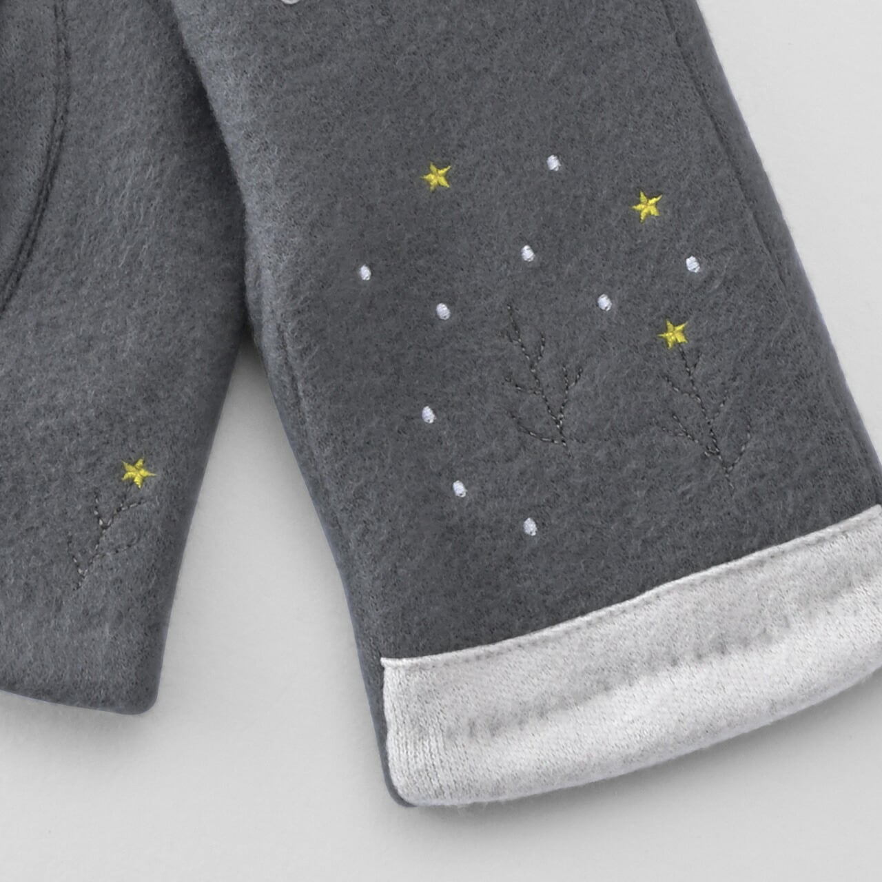 ・雪が深々と降り積もる風景を刺繍と生地の色で表現したジャージグローブ。