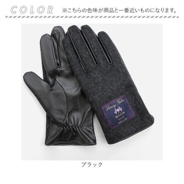 ・インポートファブリックブランド「 MOON(ムーン) 」のツイード生地と、やわらかな羊革を合わせた、トラッドで大人カジュアルな雰囲気のコンビネーショングローブ。