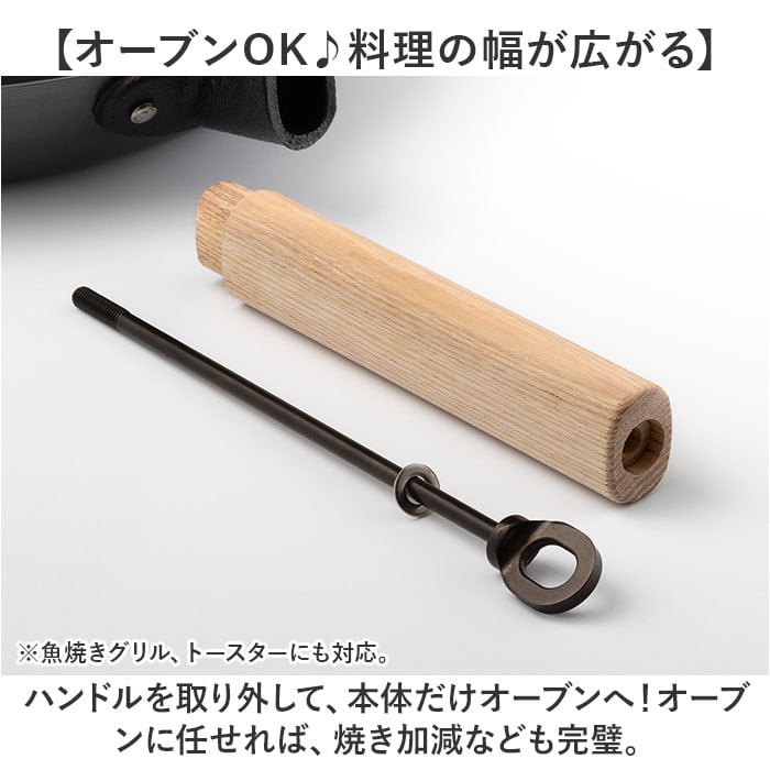 ・使い始めでも油馴染が良く、焦げ付きやサビが発生しにくい焼入れ加工済み。