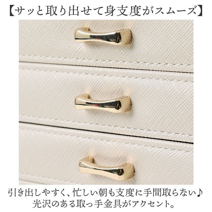 ・引き出しやすく、忙しい朝も支度に手間取らない♪光沢のある取っ手金具がアクセント。