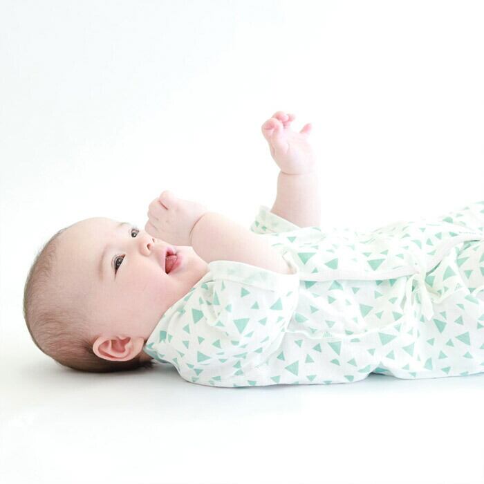 ・安心安全の日本製コットン100%のやわらかフライス素材、幾何柄のプリントのコンビ肌着です。