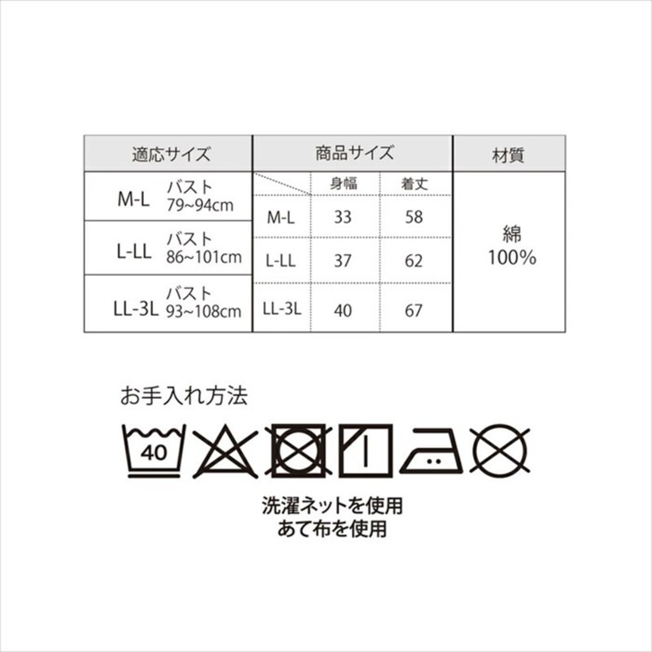 [総丈]M-L:約61cm[身幅]M-L:約35cm [総丈]L-LL:約63cm[身幅]L-LL:約37cm [総丈]LL-3L:約65cm[身幅]LL-3L:約39cm