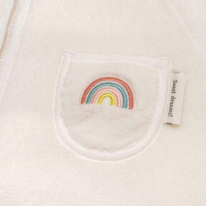 ・胸元には可愛らしいレインボー刺繍が施された大きめポケットが付いていて、お子様のお気に入りのお菓子を少し入れて頂けるようになっています♪