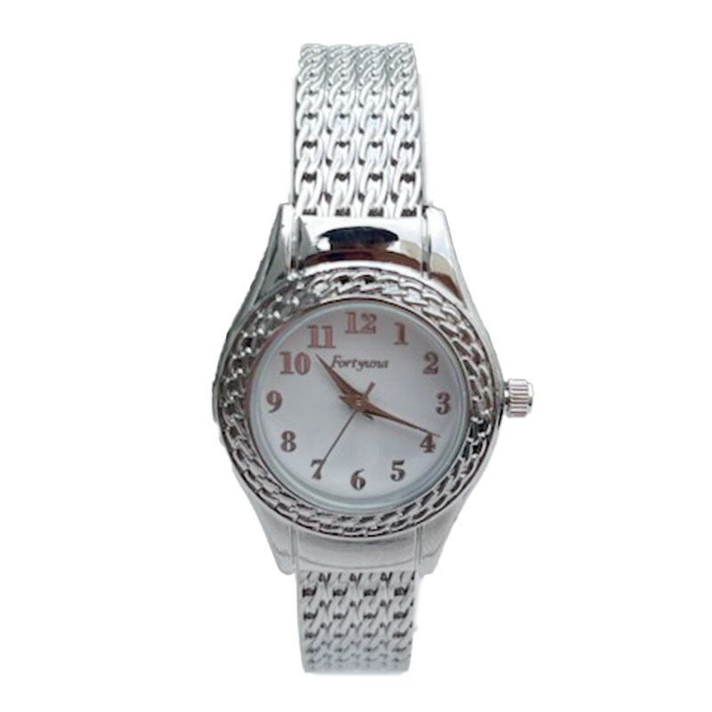 ・唐草模様風をバングル部分と時計のフェイスにデザイン。バングルの内側を削ってより軽くなってアクセサリーと一緒につけても平気。文字盤はホワイト・数字と針はケースカラーに合わせてハッキリ見やすい。