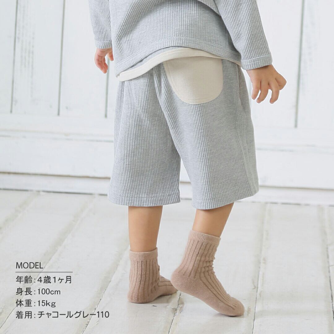 ・後ろの丸みバイカラーポケットがかわいい♪ワッフル生地の5分丈パンツです。