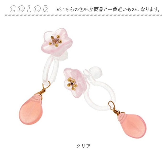 イヤリング サン宝石 通販 耳飾り ノンホールピアス アクセサリー サンホ ER-4610 お花としずくストーン揺れる樹脂イヤリング 揺れる ゆれる お花 フラワー おしゃれ かわいい きれいめ シンプル 大人可愛い ギフト プレゼント レディースジュエリー