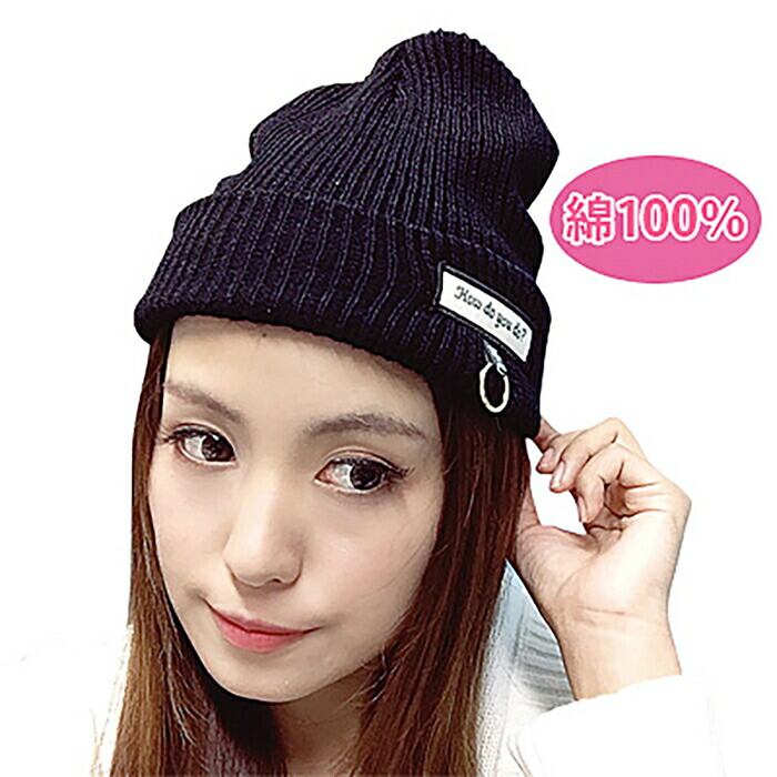 ニット帽 レディース 綿 通販 サン宝石 ニット 帽子 ニットキャップ ワッチキャップ キャップ コットン おしゃれ シンプル かわいい 黒 ブラック 女の子 女子 小学生 中学生 高校生 サンホ KO-1389 英字タグつきシンプルニット帽 レディース帽子