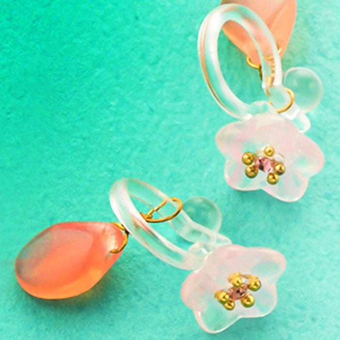 ・アレルギーの方にも使っていただける、樹脂イヤリング。透明だからピアスをしているように見えるよ。