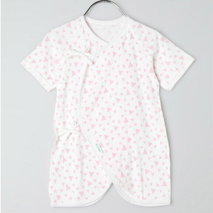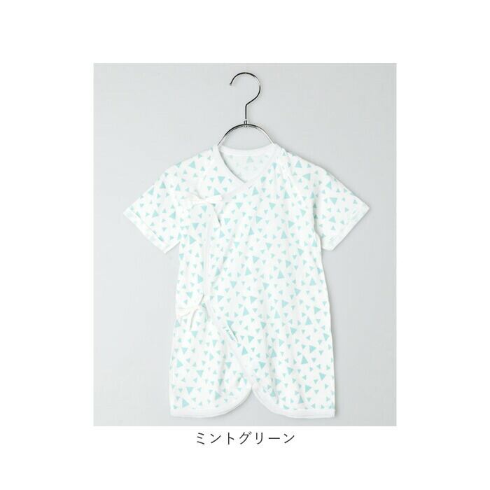 ・安心安全の日本製コットン100%のやわらかフライス素材、幾何柄のプリントのコンビ肌着です。