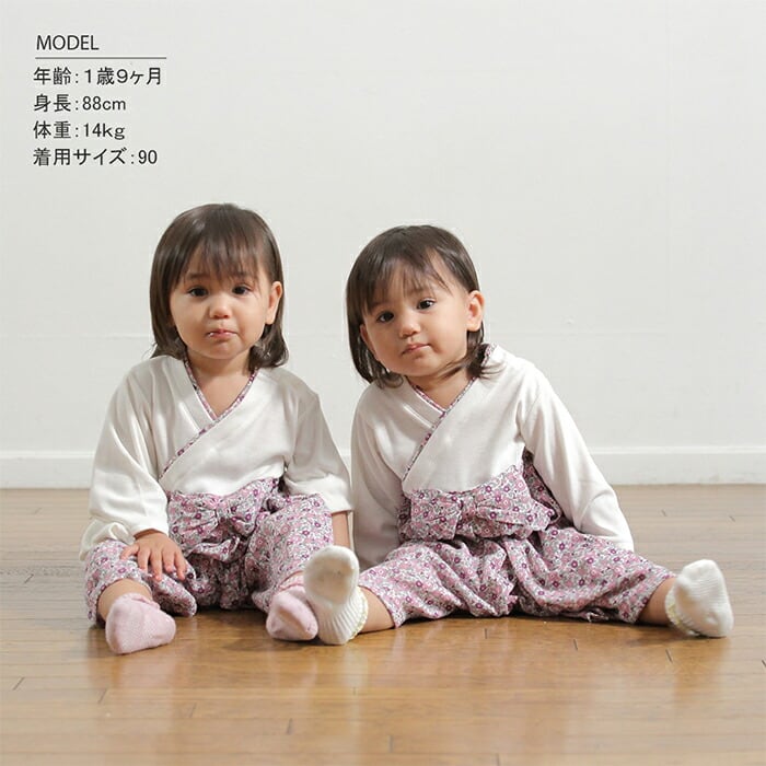 【Aenak】ボトム部分に可愛らしい小花柄がデザインされた袴ロンパース