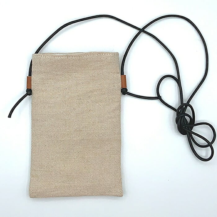 ・ナチュラルなイメージのしっかりしたコットンとジュートの素材で作られたスマホショルダー。